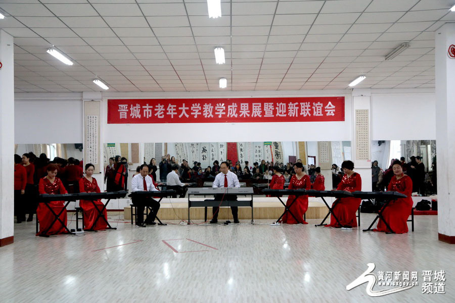 2017年12月29日,晋城市老年大学教学成果展暨新年联谊会在秀水苑校区举行。四百多名学员登场展示了学业成果。演出现场热情洋溢,充分显示了老年人丰富多彩的文化生活。(摄影:刘廷贵)
